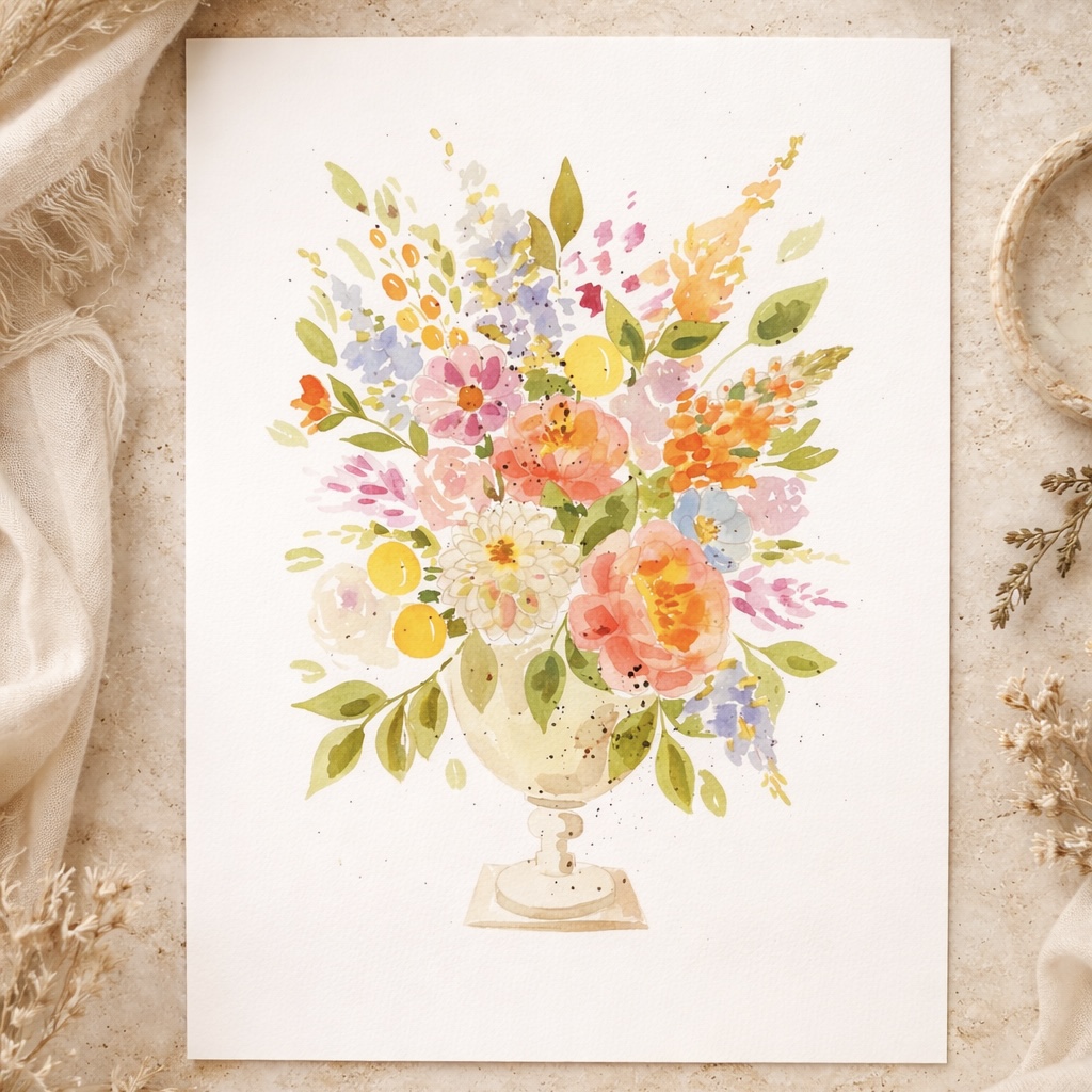 Lass dich von der Leichtigkeit des Sommers inspirieren und tauche ein in die Welt der Aquarellmalerei zum Thema Blütenstrauß.
