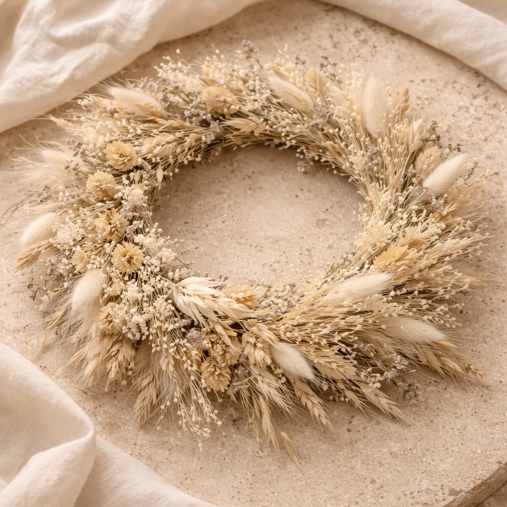 Wir gestalten gemeinsam einen wunderschönen Trockenblumenkranz mit einer großen Auswahl an Trockenblumen.