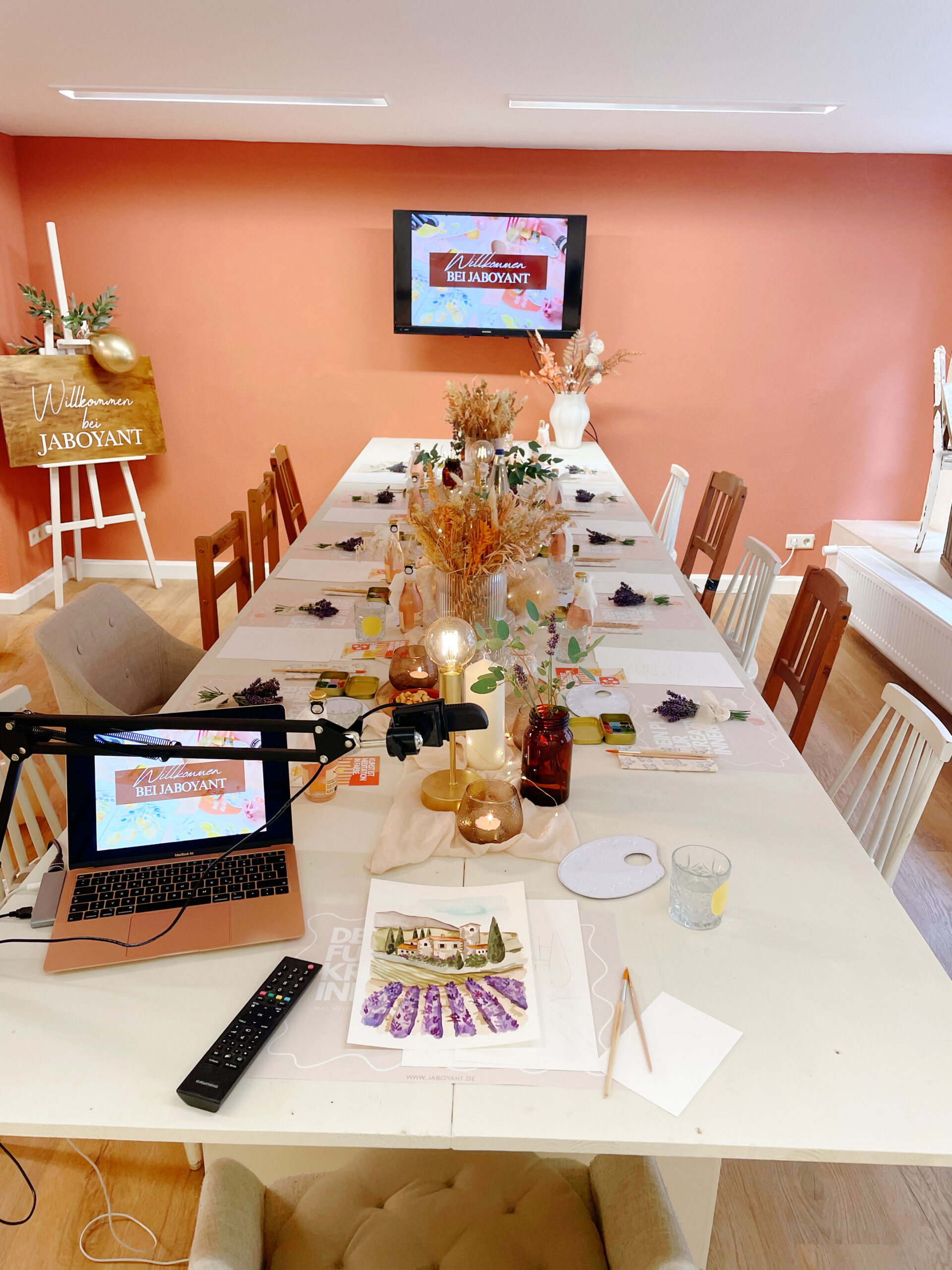 Zusätzlich erwarten euch alkoholfreie Getränke, kleine Snacks und eine entspannte Atmosphäre zum Abschalten und Kreativsein.